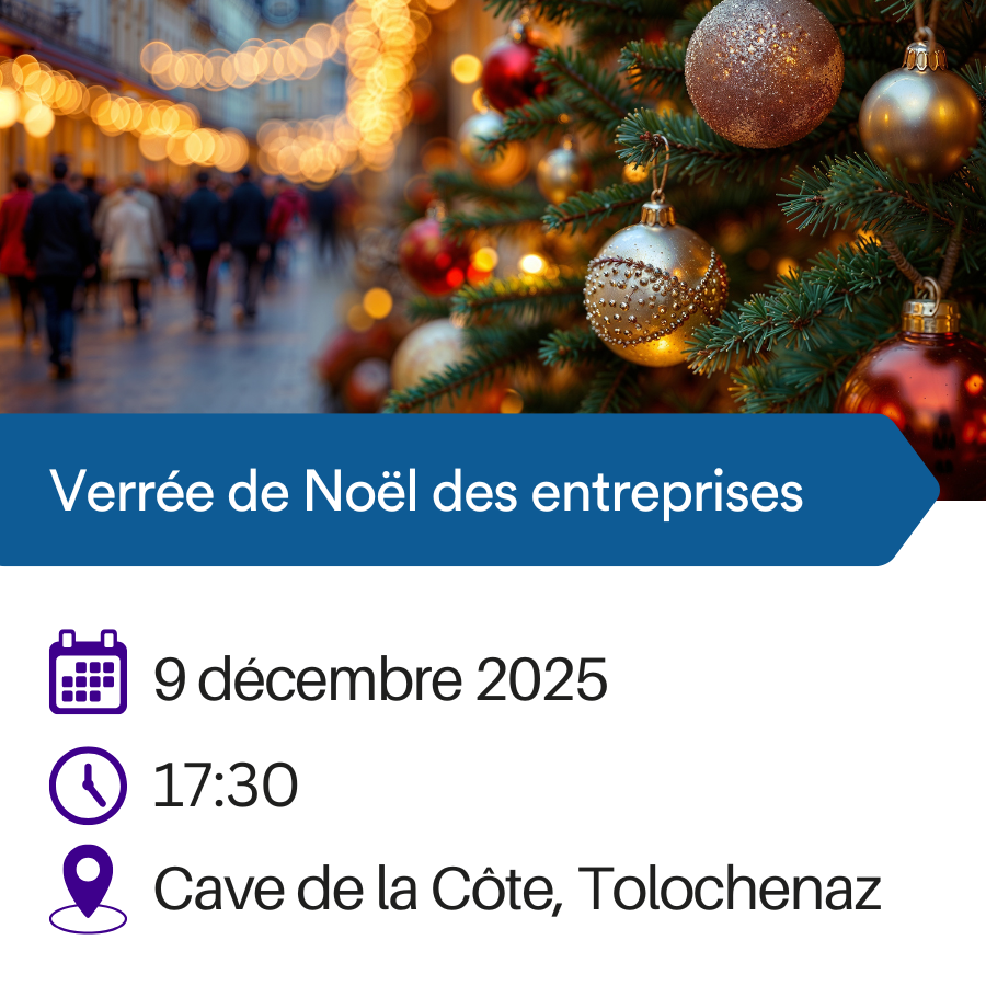 Pour clôturer l’année en beauté, l’ARCAM invite les entreprises membres de la Plateforme Economique à la Verrée de Noël qui se tiendra le mardi 9 décembre dès 17h30 à la Cave de la Côte à Tolochenaz.